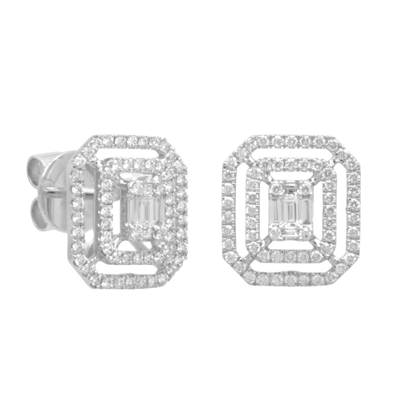 Pendientes en oro blanco de 18 quilates y diamantes en talla brillante y baguette (0.70 ct).