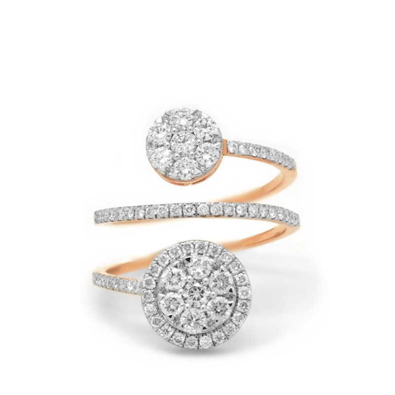 Anillo cruzado en oro rosa de 18 quilates y diamantes en talla brillante (1.09 ct).