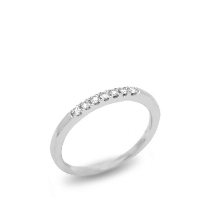 Anillo tipo alianza en oro blanco de 18 quilates y 7 diamantes en talla brillante (0.15 ct).