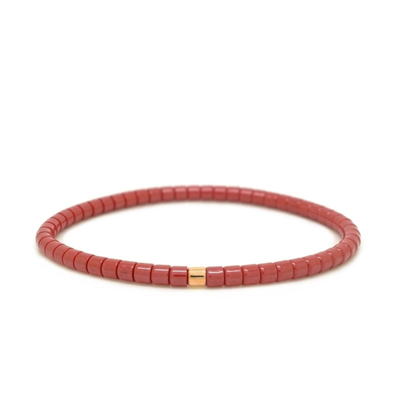 Pulsera elástica de cerámica roja brillo con un motivo en oro rosa de 18 quilates.