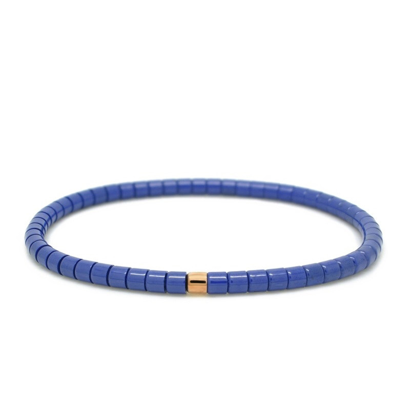 Pulsera Elástica Cerámica Azul Oro Rosa