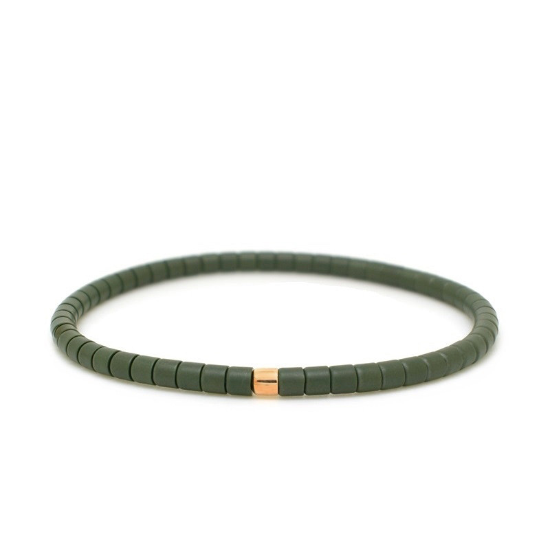 Pulsera elástica de cerámica verde mate con un motivo en oro rosa de 18 quilates.