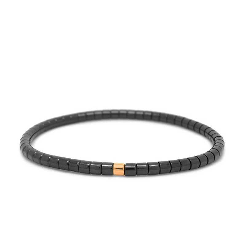 Pulsera elástica de cerámica negra brillo con un motivo en oro rosa de 18 quilates.