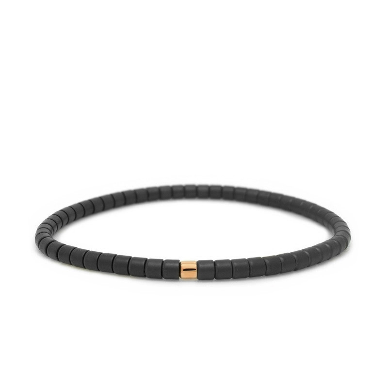 Pulsera elástica de cerámica negra mate con un motivo en oro rosa de 18 quilates.