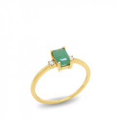 Anillo en oro amarillo de 18 quilates, esmeralda y 2 diamantes en talla brillante (0.04 ct).