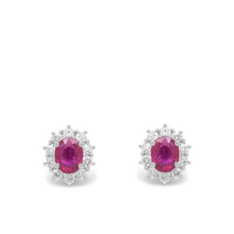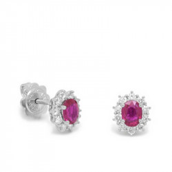 Pendientes tipo orla de la firma Mirco Visconti. Realizado en oro blanco de 18 quilates con diamantes en talla brillante (0.34 ct) y un rubí oval (0.93 ct).