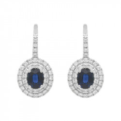 Pendientes de la firma Mirco Visconti. Realizados en oro blanco de 18 quilates con doble orla de diamantes en talla brillante (0.44 ct) y zafiro oval (1.13 ct).