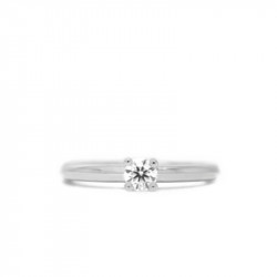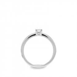 Anillo tipo solitario de la firma Mirco Visconti. Realizado en oro blanco de 18 quilates y un diamante en talla brillante de 0.25 ct.