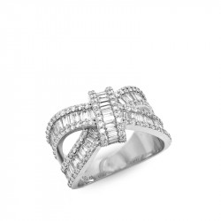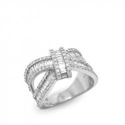 Anillo cruzado en oro blanco de 18 quilates y diamantes en talla brillante y baguette (1.50 ct).