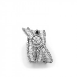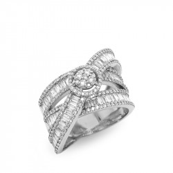 Anillo triple cruzado en oro blanco de 18 quilates y diamantes en talla brillante y baguette (1.76 ct).