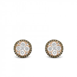 Pendientes tipo roseta en oro rosa de 18 quilates con diamantes en talla brillante (0.84 ct) y diamantes marrones (0.16 ct).