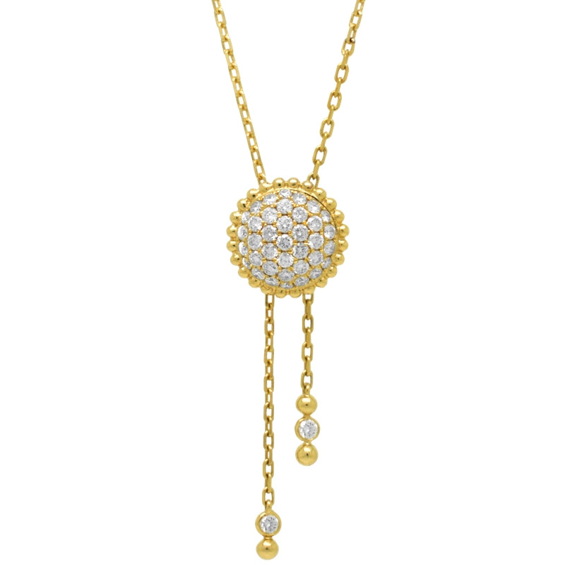 Cadena y colgante en oro amarillo de 18 quilates y diamantes talla brillante (0.63 ct). La cadena corre detrás del motivo para regular la medida.