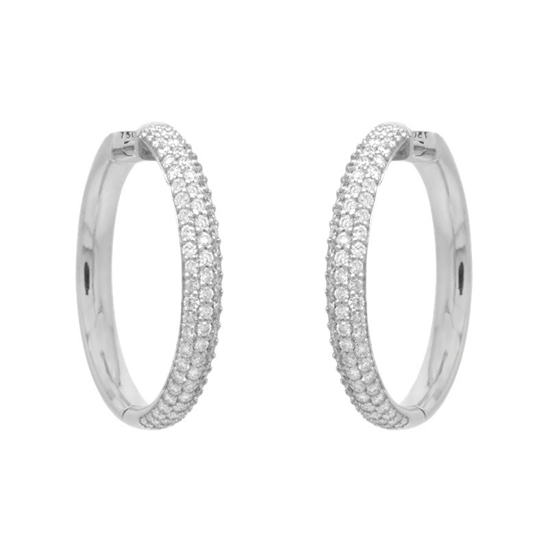 Pendientes tipo aro en oro blanco de 18 quilates y pavé de diamantes en talla brillante (1.50 ct).