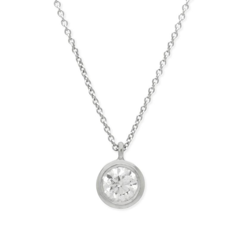 Colgante tipo donut en oro blanco de 18 quilates y un diamante natural certificado talla brillante (0.50 ct), con cadena de 44 cm regulables.