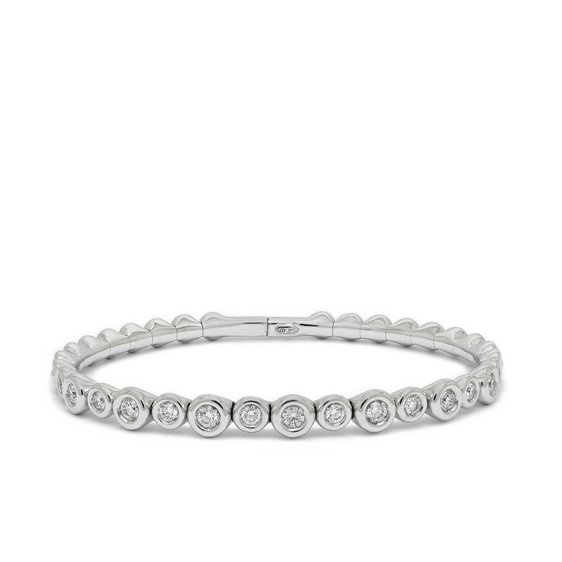 Pulsera semirígida en oro blanco de 18 quilates con cierre de imán, tipo media riviere de chatones con 15 diamantes en talla brillante (1.14 ct).