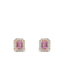Pendientes en oro rosa de 18 quilates, diamantes en talla brillante (0.18 ct) y dos zafiros rosas octogonales (0.46 ct).