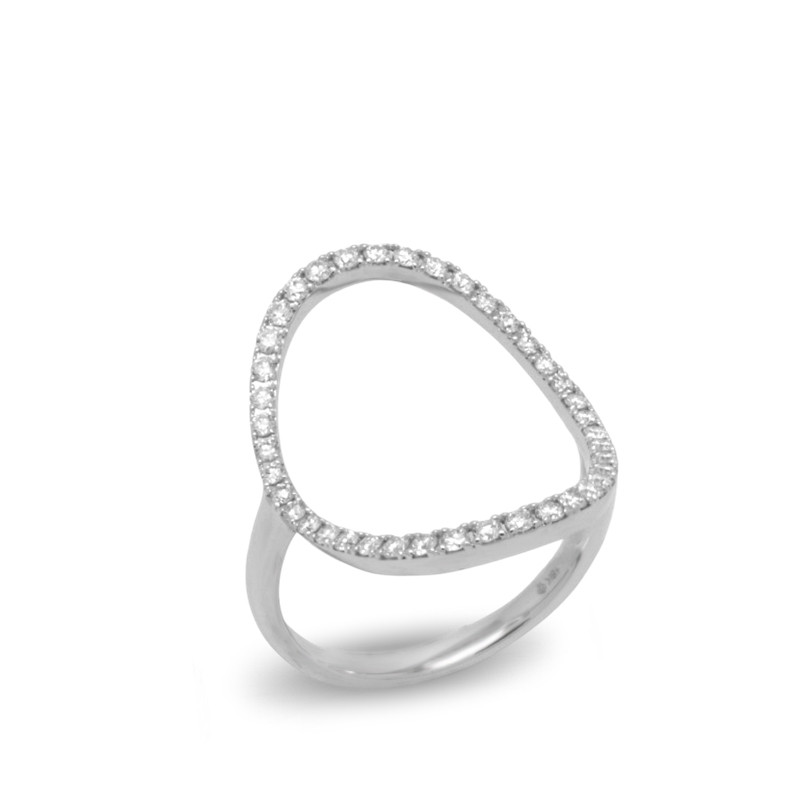Anillo con motivo oval calado en oro blanco de 18 quilates y diamantes en talla brillante (0.40 ct).