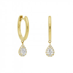 Pendientes de aro redondo liso en oro amarillo de 18 quilates y colgante con diamantes en talla brillante y talla perilla (0.31 ct).