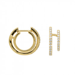 Pendientes tipo aro doble en oro amarillo de 18 quilates y diamantes en talla brillante (0.28 ct).