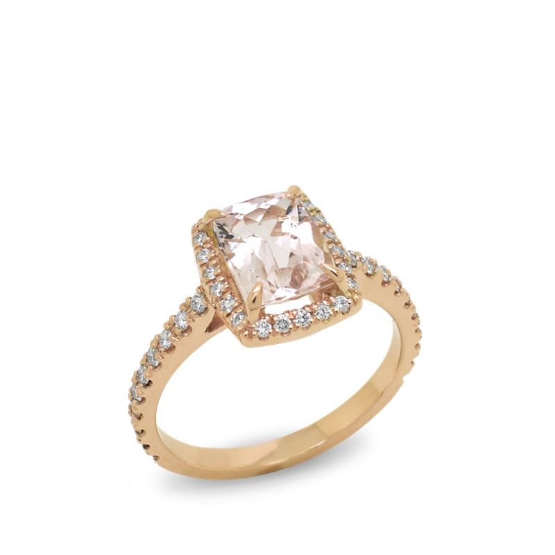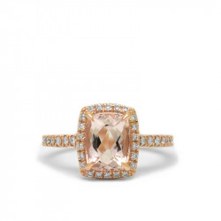Anillo en oro rosa de 18 quilates, una morganita central (1.43 ct) y diamantes en talla brillante (0.29 ct).