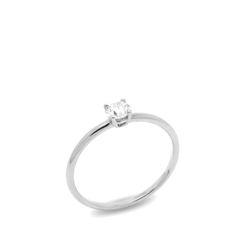 Anillo tipo solitario en oro blanco de 18 quilates con un diamante central en talla brillante de 0.21 ct.