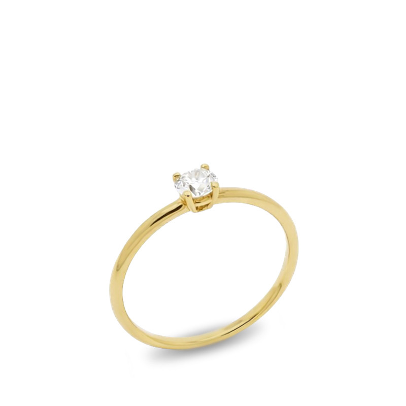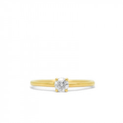 Anillo tipo solitario en oro amarillo de 18 quilates con un diamante central en talla brillante de 0.20 ct.