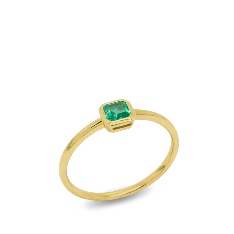 Anillo tipo solitario en oro amarillo de 18 quilates con una esmeralda central de 0.25 ct.