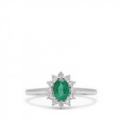 Anillo en oro blanco de 18 quilates, esmeralda (0.30 ct) y diamantes en talla brillante (0.15 ct).